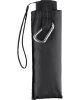 Högkvalitativt Windproof-system för maximal ramflexibilitet i stormiga förhållanden, kromat stålskaft, lättviktsduk, platsbesparande i extra platt utförande, platt handtag med möjlighet till reklamtryck, karbinhake för fäste på ryggsäck eller väska, passar i handväskan då det är litet och lätt. (artnr: 5069)